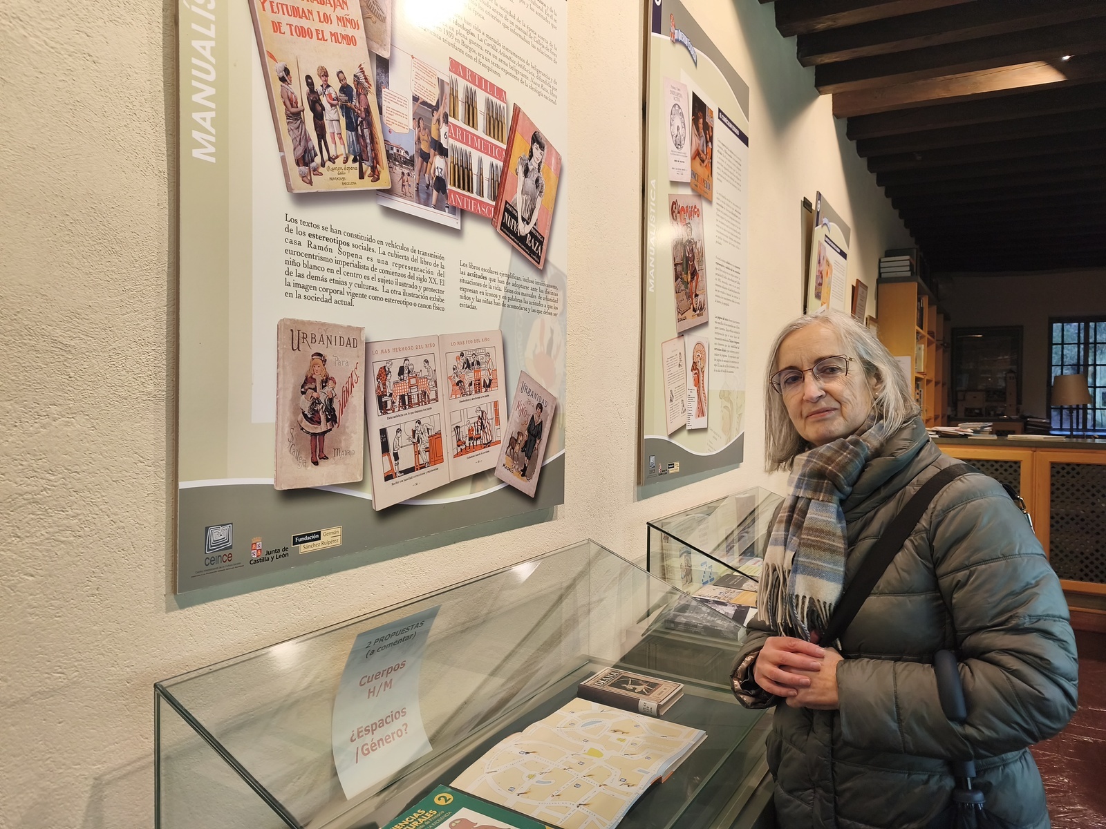 Visita al CEINCE de María Sánchez Agustí, profesora jubilada de Didáctica de las Ciencias Sociales en la Universidad de Valladolid, que siguió con especial atención la iconografía que exhibe la exposición “De Flora a Diana”, cuyo análisis sociocrítico permite detectar las trampas que ofrece la manualística escolar, con indicios de persistencia de los estereotipos tradicionales que subyacen en las representaciones de género recientes.