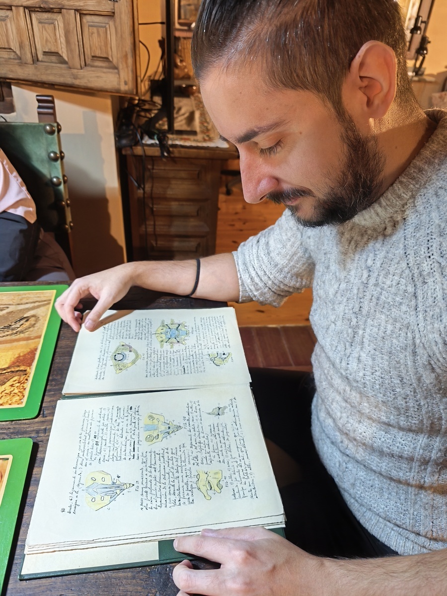 Con especial interés, nuestro joven consultor centró su atención en los dibujos insertos en los apuntes de anatomía de un estudiante de Medicina de la Universidad de Santiago de Compostela, datados en el año 1935, ejemplo de minuciosa reproducción de los componentes esenciales del cuerpo humano.
